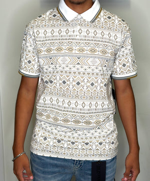White/Gold Playera Aztec Pattern Men Tops